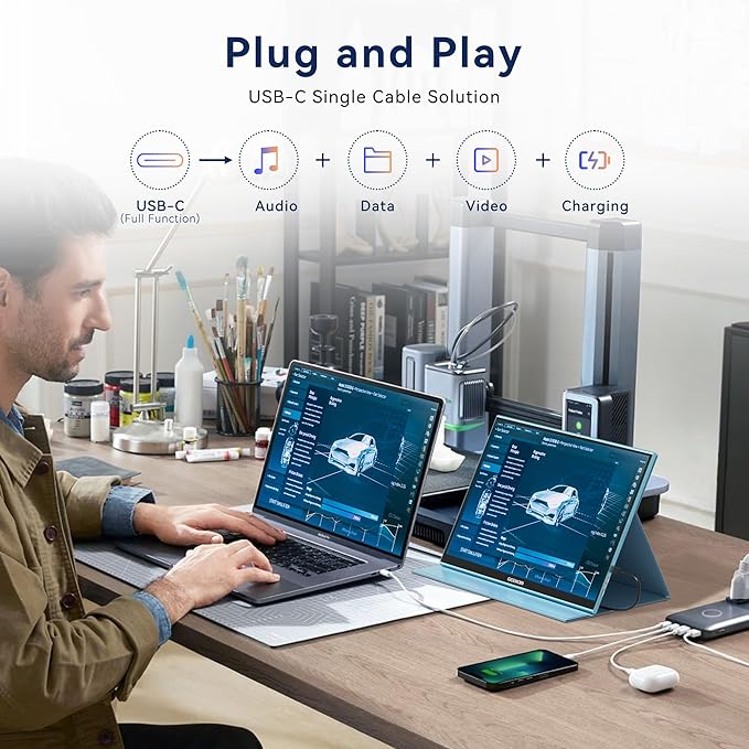 - [Plug-and-Play USB-C Monitor] Features two full-featured USB-C ports and one Mini HDMI port, providing all the necessary connections for gaming and work, and allowing for high-definition transmission of audio and video signals. It works seamlessly with most tablets, laptops, PCs, Mini PCs, smartphones, PS4, XBOX, and more.