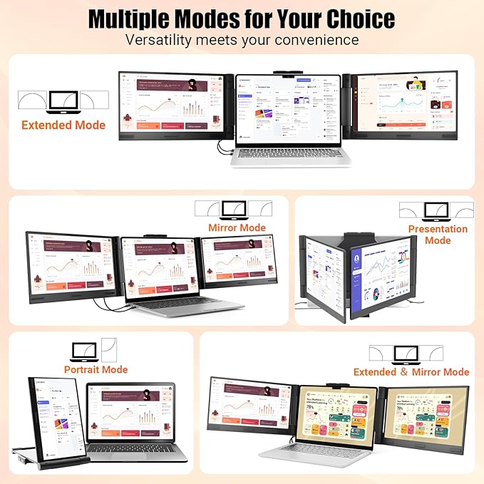 - Boost 300% Efficiency- Funhill laptop screen extender can instantly expand your laptop to triple screens - view spreadsheets, design tools, and chats simultaneously. Say goodbye to the hassle of constantly switching back and forth on a single laptop screen continuously. Portable screen for laptop can switch between extended/duplicate/portrait modes to minimize tab-switching fatigue. Funhill triple monitor provides the perfect solution for laptop users for multi-screen synchronization and split-screen display.