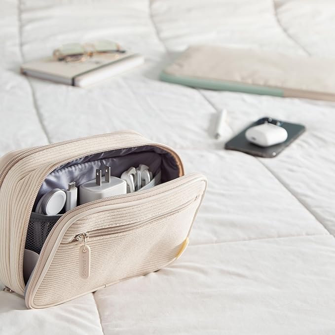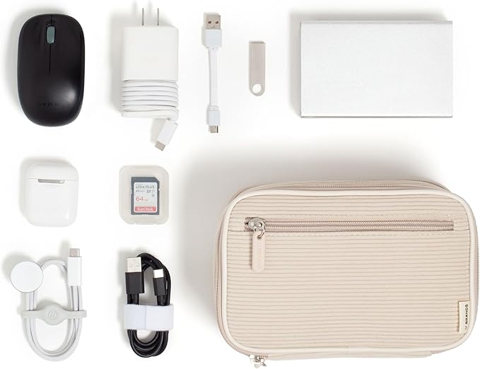 - ALL-IN-ONE TECH TRAVEL ORGANIZER: This 8" x 5.25" cable and cord travel organizer bag in sand beige offers multiple compartments to store and protect your tech accessories; perfect for on-the-go or daily use, it is one of the best travel gifts