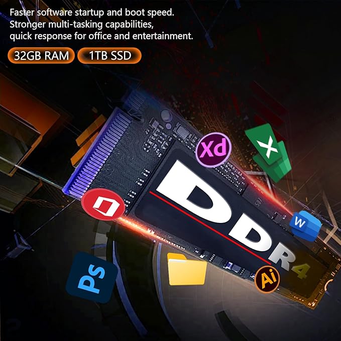 - ➤ Powerful 32GB RAM + 1TB SSD | With 32GB DDR4 RAM, you can run dozens of browser tabs, video editing tools, and office apps smoothly without slowdown. The 1TB PCIe NVMe SSD ensures quick boot-ups and fast file transfers—plenty of space for projects, photos, and essential software, making it ideal for students, professionals, and multitaskers.