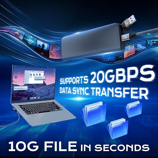 - 20Gbps Data Transfer: This right angle usb c to usb c 3.2 data cable offers 20Gbps SuperSpeed data transfer ,transferring an HD movie in just seconds.(NOTE: The transfer speed depends on the speed supported by your device port;Please use USB-C to C port to reach 20Gbps speed, A to C only supports 10Gbps).)