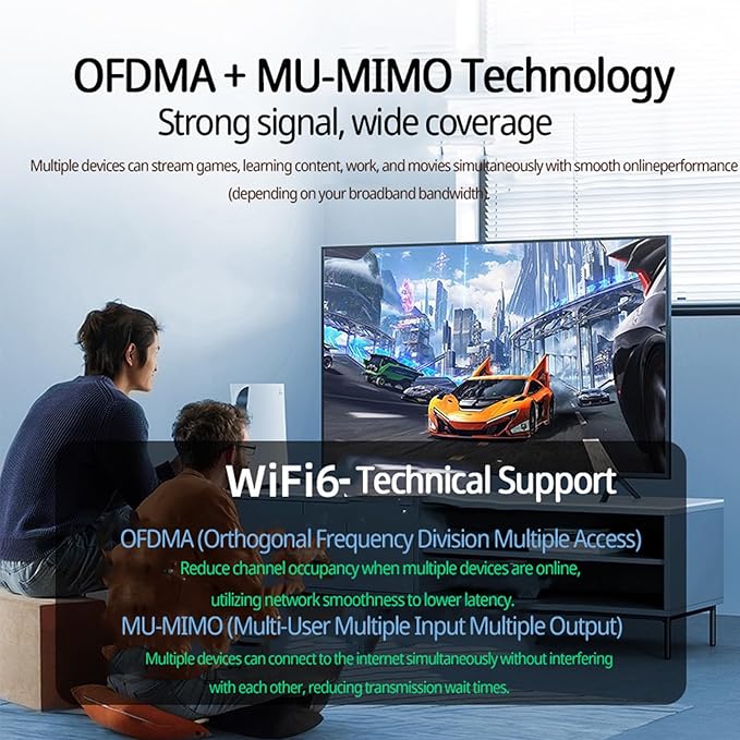 - OFDMA (Orthogonal Frequency Division Multiple Access) reduces channel occupancy when multiple devices are online.