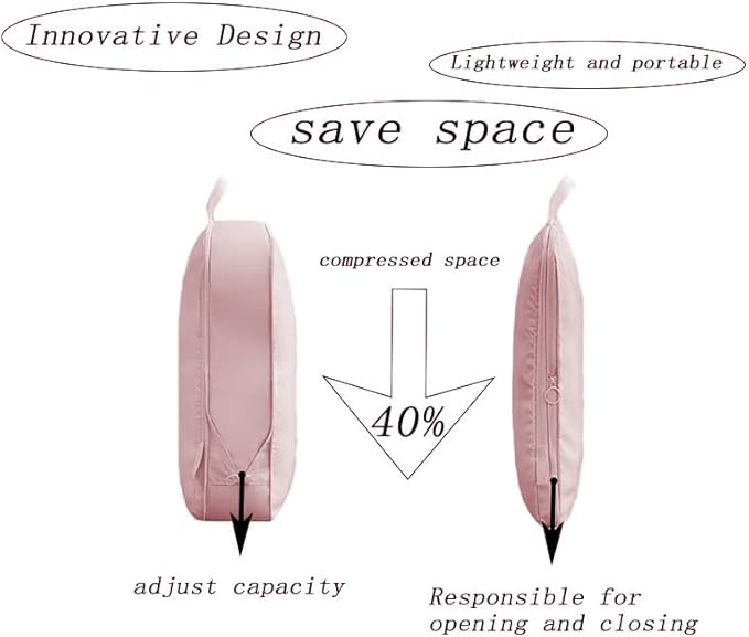 6-piece travel compression packaging cube - foldable travel bag expandable, luggage storage bag. (pink)