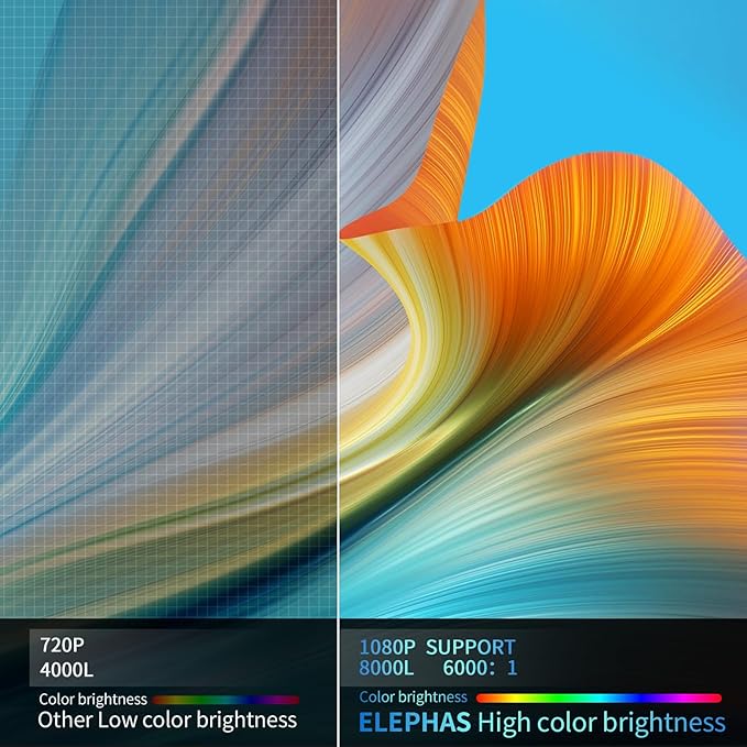 - 【1080P Full HD Resolution】Equipped with a premium German emerald glass lens, this mini projector delivers crisp 1080P Full HD clarity with 24-bit true color and up to a 200" screen for immersive viewing.